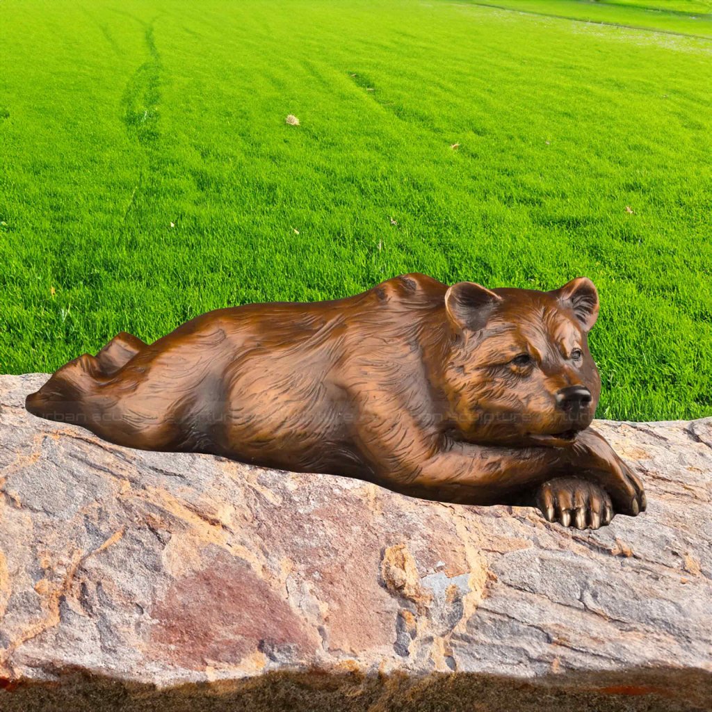 يُظهر هذا التمثال البرونزي للدب الأشيب دبًا أشيبًا مستلقيًا بهدوء، واقعيًا وهادئًا. تمثال الدب الأشيب البرونزي مصنوع بدقة، حيث يظهر شعر الدب الأشيب متدرجًا بوضوح ودقيقًا، مما يعطي الناس إحساسًا حقيقيًا باللمس. يظهر جسم الدب وضعية منحنية طبيعية، وتستقر كفوفه الأمامية برفق على الصخرة، وكأنه يستمتع بوقت هادئ.