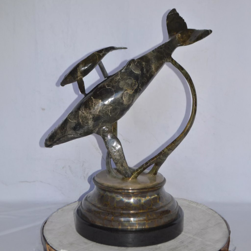Die Mutterwal hat einen eleganten Körper und schwimmt um das Kalb herum, was einen starken Schutzinstinkt und sanfte Fürsorge vermittelt. Die Wal-Bronze-Skulptur ist sorgfältig aus Bronze gefertigt, mit exzellenten Details, und die hellen Markierungen auf der Haut der Mutterwal und des Kalbs sind deutlich sichtbar. Das Sockel ist aus Marmor gestaltet, und seine elegante Textur ergänzt die BronzBlaufisch-Statue und verleiht dem gesamten Kunstwerk Nobilität und Stabilität. Arturban-Skulpturen können verschiedene Tierstatuen anpassen, willkommen, kontaktieren Sie uns für weitere Details.