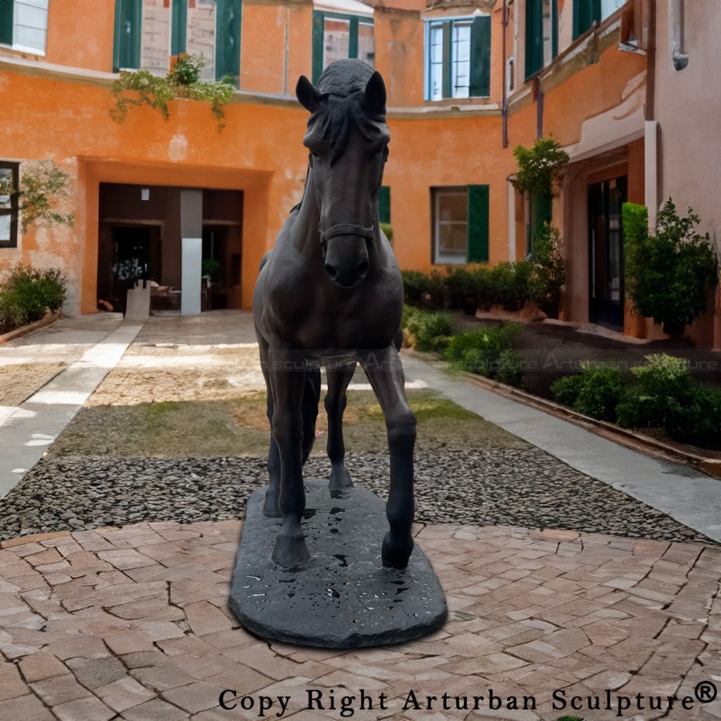 The horse in the Horse Statue Bronze is slender, with strong limbs and a steady stance, appearing agile and powerful. The Cast Bronze Horse Sculpture has a confident expression and its eyes reveal concentration and vitality. The horse’s mane and tail are finely carved to show its smooth lines, making the overall shape more dynamic. The base of the sculpture is designed to be simple and natural. The luster of bronze makes the sculpture more vivid, combining the elegance and strength of the Thoroughbred horse to the fullest. Arturban Sculpture can customize various horse statues. Welcome to contact us for more details.