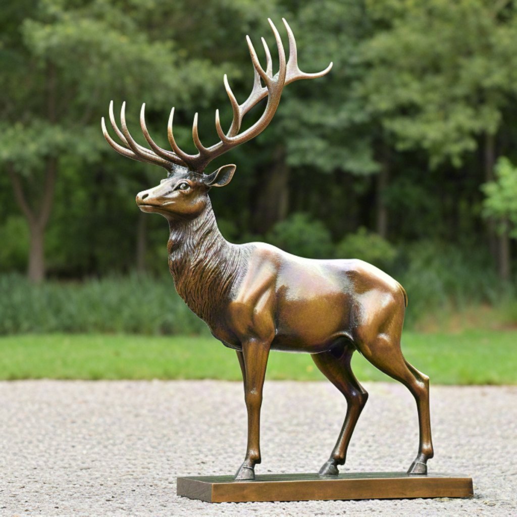Le cerf élaphe est l’une des plus grandes espèces de la famille des Cervidés. Il est largement distribué en Europe, en Afrique du Nord, en Sibérie et en Asie centrale. Il est également une espèce symbolique importante dans de nombreuses cultures. Les cerfs élaphes remontent à la fin de l’Âge glaciaire, et avec les changements climatiques, ils se sont progressivement étendus à de vastes zones de forêts et de prairies. Les cerfs élaphes sont célèbres pour leurs impressionnants bois mâles, qui tombent et se régénèrent avec les saisons, en particulier pendant la saison de reproduction. Les cerfs mâles se battent souvent avec leurs bois pour rivaliser pour les partenaires. Les cerfs élaphes sont herbivores et se nourrissent principalement d’herbe, de feuilles et d’arbustes. Cette Statue de Cerf à Vendre prend un cerf élaphe mâle comme thème, montrant son apparence typique et sa posture noble.
